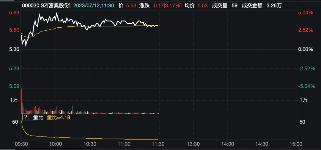 富奥股份今天上午盘中涨幅一度超过5%,后涨幅也有所收窄。