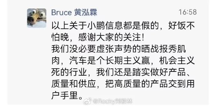 “以上关于小鹏汽车信息都是假的,好饭不怕晚,感谢大家的关注!我们没必要虚张声势的晒战报秀肌肉,汽车是个长期主义赢,机会主义死的行业,我们爱是踏实做好产品、质量和供应,把高质量的产品交到用户手里。”黄泓霖在朋友圈表示。