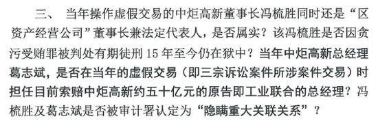 中山润田在最新声明中,首先发问中炬高新被索赔的三起诉讼案件。