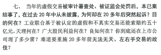 中山润田方面表示,2003年的虚假交易被审计署查处、中国证监会处罚后,本已案结事了,在过去20年中从未披露,为何在20多年后突然起诉?
