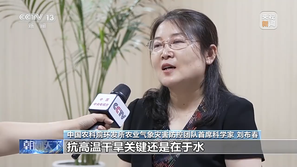 中国农科院环发所农业气象灾害防控团队首席科学家 刘布春:目前,我们很多地区也迎来了系统性降水,但是我们也要未雨绸缪,科学应对高温干旱,抗高温干旱关键还是在于用水。一是要统筹考虑降水、地表水、地下水它的季节性、区域性分布特点,蓄足水源,保障抗旱应急时候的用水需要,第二个方面要实施节水高效灌溉,扩大灌溉面积。