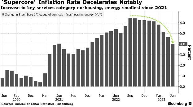 安德斯承认,上周的报告中有很多值得关注的地方,总体CPI环比仅上升0.2%,年率下降1%至3.0%,为2021年3月以来的最低水平。核心通胀率同比上升0.2%至4.8%,低于5月份的5.3%和2022年9月6.6%的峰值。