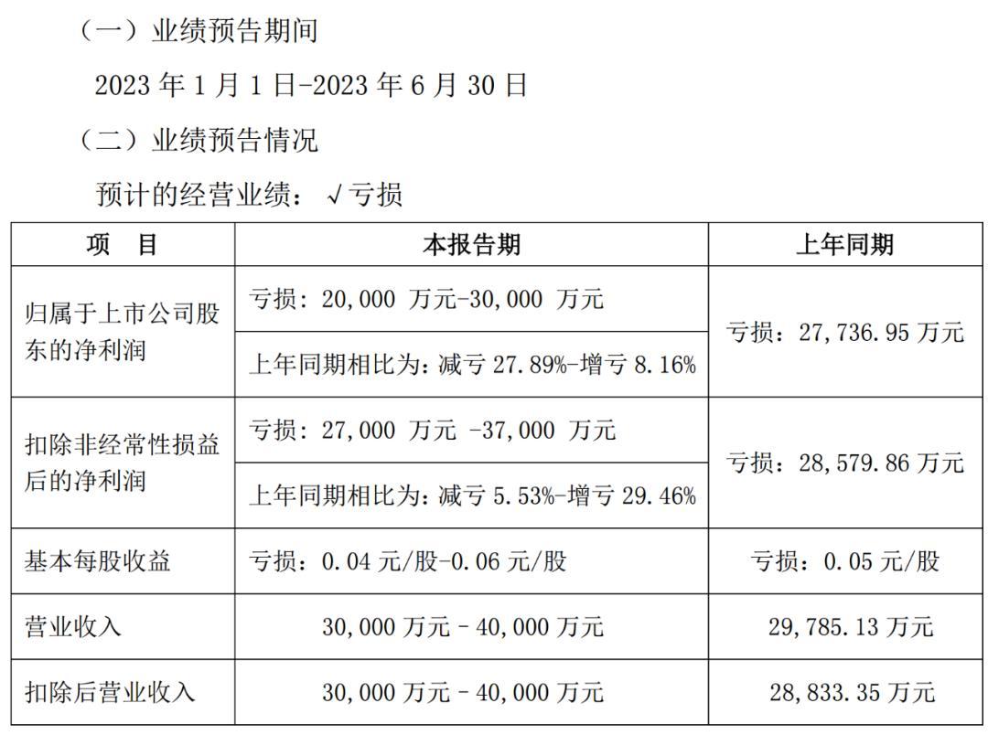 紧接着,众泰汽车在7月14日发布了2023半年度业绩预告,预计上半年净利润亏损2亿元-3亿元,同比减亏27.89%至增亏8.16%。