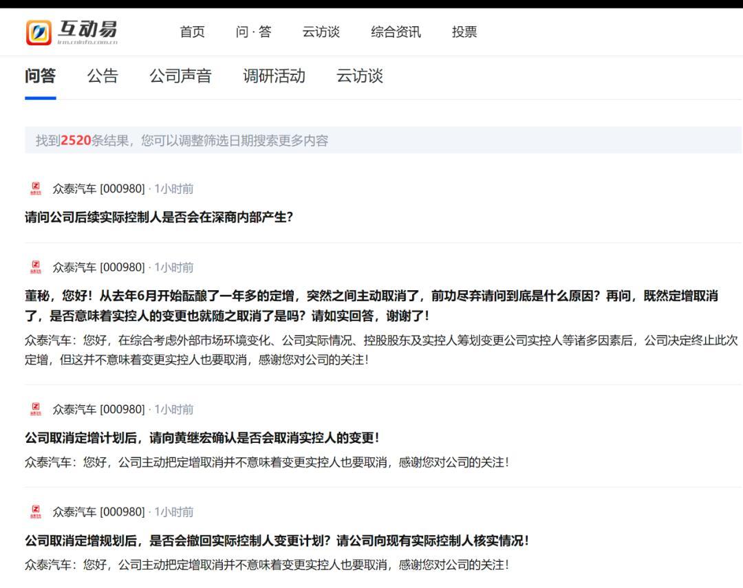 今天(7月18日),众泰汽车又在互动平台上表示,公司主动把定增取消并不意味着变更实控人也要取消。