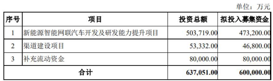 众泰汽车拟将募集资金投向三个项目,向新能源智能网联汽车开发及研发能力提升项目投入47.32亿元,向渠道建设项目投入4.68亿元,剩余8亿元用于补充流动资金。