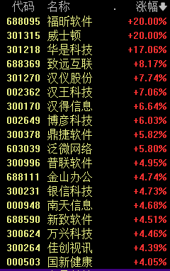 今天上午,威士顿、福昕软件20%涨停;金山办公上涨4.74%,最新市值为2093亿元,上午成交额为36.9亿元,为A股第一。