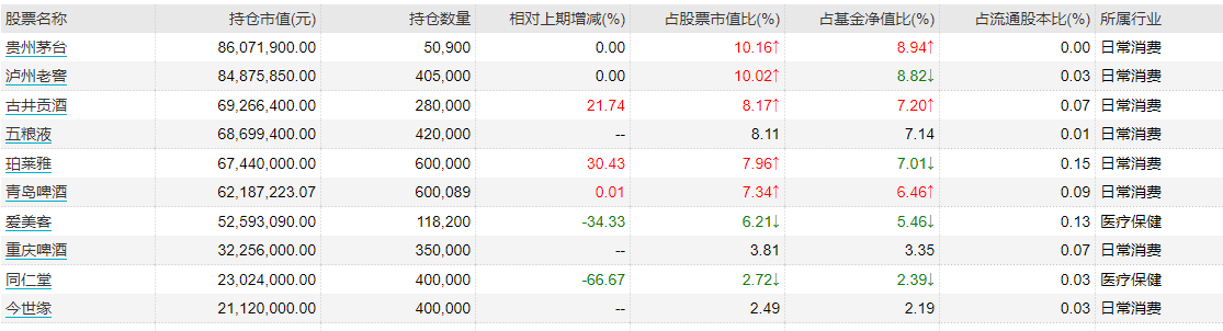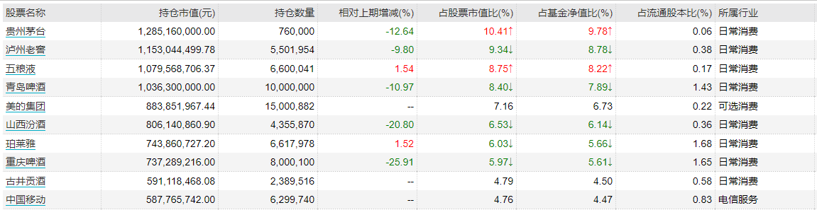 最为明显的变化在于减仓可选消费,如高端白酒等,加仓医药。以旗下管理的银华富裕主题为例,前十大重仓股当中,贵州茅台、泸州老窖、山西汾酒等均较前一季度末持仓有所减少,Wind统计显示,减持幅度分别为12.64%、9.8%、20.80%。而在银华富利精选前十大重仓股中,益丰药房、老百姓等则分别较前一季末加仓42.91%、18.56%。