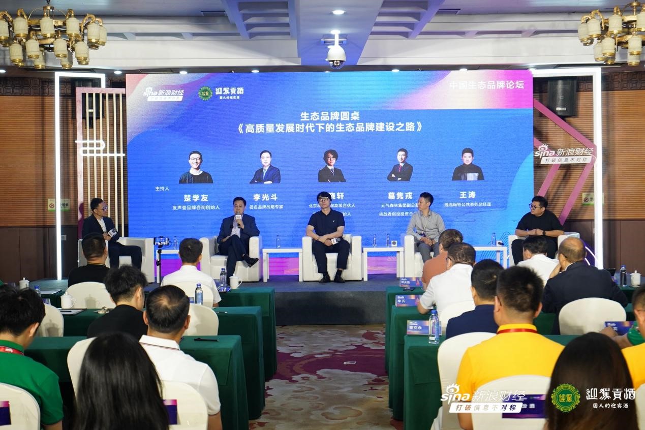 7月15日,由新浪财经和迎驾贡酒联合主办的首届生态品牌论坛暨2023“百大年度品牌榜”颁奖典礼在安徽省六安市霍山县迎驾山庄举办。在生态品牌圆桌《高质量发展时代下的生态品牌建设之路》上,著名品牌战略专家李光斗,北京和君咨询高级合伙人、智谷先和咨询创始人贾晓轩,挑战者创投投资合伙人葛隽戎,泡泡玛特公共事务总经理王涛围绕生态品牌建设相关话题展开对话。
