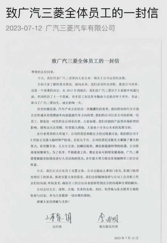 这两天,网上流传出广汽三菱的一封全员信。
