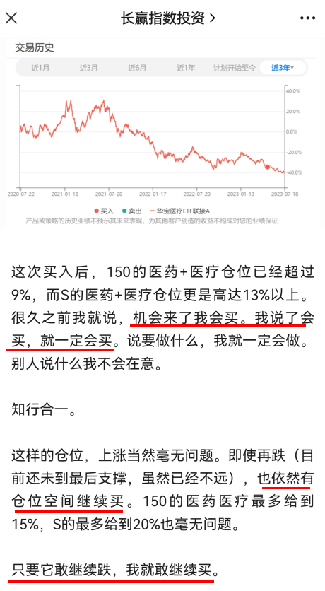 据了解,“长赢指数投资”分别于4月和6月两度买入医疗ETF(512170)联接基金,此次为第三次买入。“长赢指数投资”公众号发文表示,后续即使再跌,也依然有仓位空间继续买入医药医疗。