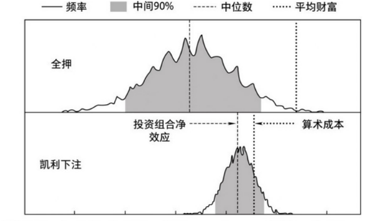 这对我们的投资有很大的启示。多数人认为低风险是有代价的,风险缓释和高收益相互冲突。但是实际上来看,避风港大幅增加期末财富的原因是游戏的迭代性质。每次掷骰子结束,赌注的规模被重置或再平衡,为下一次掷骰子提供资金。因此,避风港可以在游戏中补充,或增加赌注。特别是,就算上次投掷造成了巨大损失,你也不会屡屡付出惨痛的代价。具有成本效益的避风港让你远离了伯努利瀑布的边缘。它们实际上改变了骰子游戏——防止后续下注规模的骤降。现在,这些赌注不再彼此孤立、单独行动,而是相互作用。因此,形成了一个全新的整体,一个与各部分之和截然不同的整体。这就是所谓的强涌现。