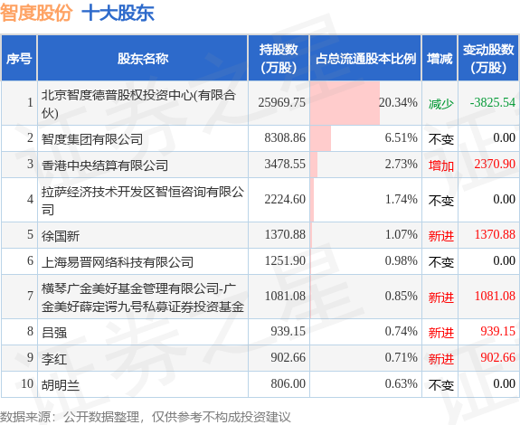 根据智度股份2023年一季报公布的十大股东详情如下: