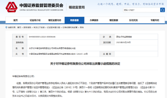 值得注意的是,就在5月底,福建证监局因为华福证券资管业务存在问题而出具了警示函。