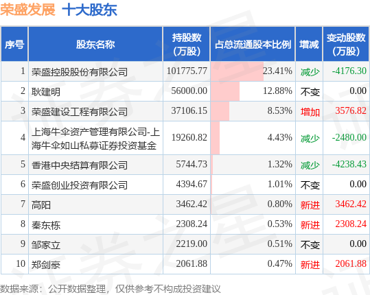 7月21日荣盛发展发布公告《荣盛发展:简式权益变动报告书》,其股东荣盛建设工程有限公司于2023年7月13日合计减持111.33万股,占公司目前总股本的0.0256%,变动期间该股股价下跌1.84%,截止7月13日收盘报1.6元。