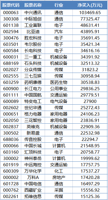 特别是在周四,中兴通讯股价重挫近5%,北上资金当天逆势净买入7.02亿元,加仓1720万股,尤其引人注目。