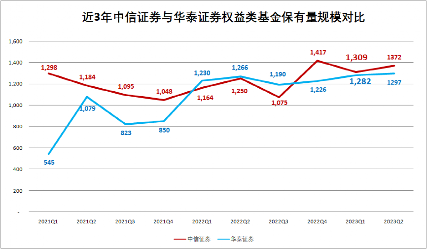 截至二季度末,华泰证券股混公募保有规模1297亿元,与中信证券差距75亿元,而在一季度差距为27亿元,二季度差距进一步拉大;非货公募保有规模方面,华泰证券为1517亿元,与中信差距191亿元,比一季度142亿元的差距也在拉大。