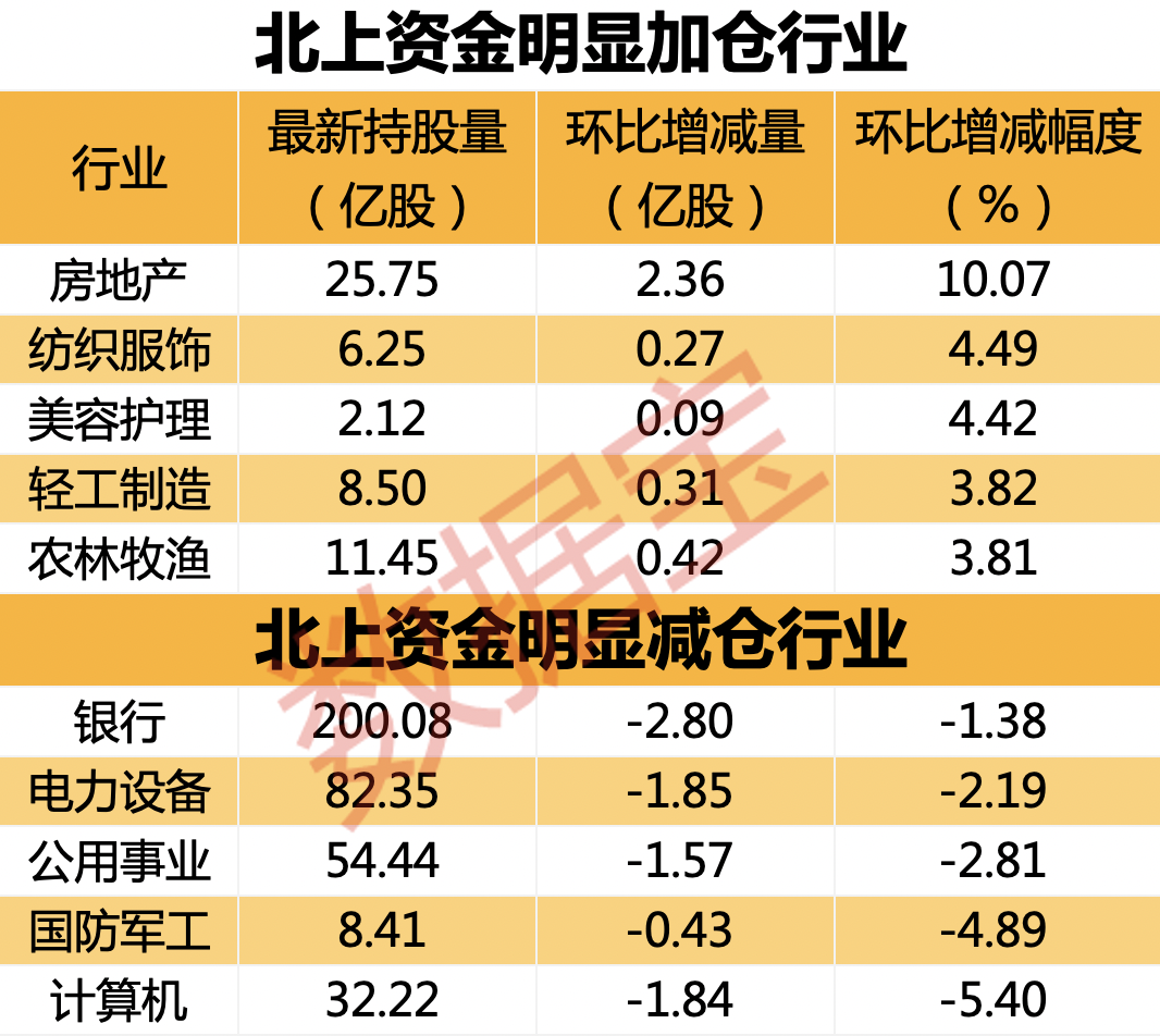 分行业来看,本周北上资金加仓多个轻工业板块,房地产、纺织服饰、美容护理、轻工制造、农林牧渔、商贸零售行业持股量环比增幅居前,周持股量环比增长在3%以上。科技属性板块遭北上资金减持,计算机、国防军工行业持股量环比降幅在4%以上。