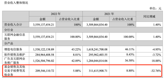 尽管截至2022年年底,同花顺“爱基金”平台已接入基金公司及证券公司194家,代销基金产品及资管产品17396只,但基金销售在其营收结构中的占比仍并不算高。