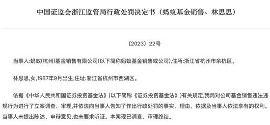 例如不久前的7月6日,浙江证监局就公布了一则行政处罚决定书,其中明确指出,蚂蚁(杭州)基金销售有限公司(简称“蚂蚁基金销售”)存在违反代销基金产品准入、宣传、档案管理有关规定;违反基金销售机构人员管理、内部控制有关规定的违法事实。