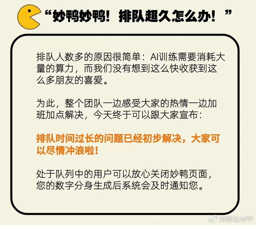 从网友反馈来看,妙鸭相机生成图片的等待时长就一路走高,7月20日晚间高峰期有4000-5000人排队,需等待十几个小时才能出片,足见其服务器拥挤程度。