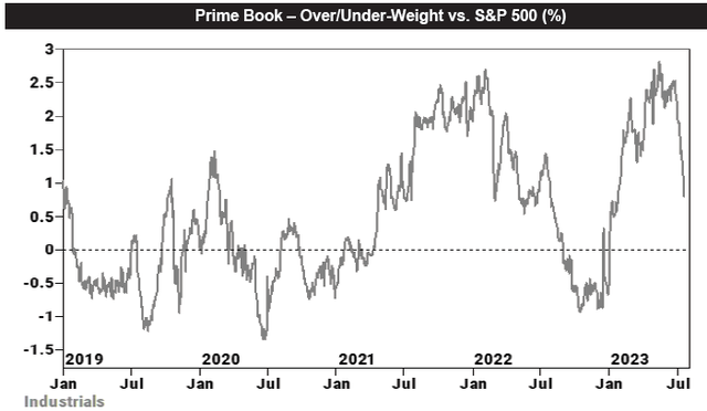 截至上周,工业股已连续四周遭遇净抛售,最近九周内有八周为净抛售,上周的净抛售规模超过了过去五年83%的水平。