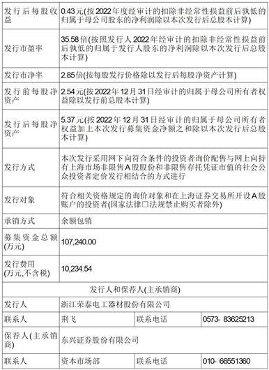 发行人:浙江荣泰电工器材股份有限公司