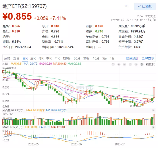一、【地产再次沸腾,地产ETF(159707)场内大涨近7.4%,机构认为行业有望迎来一轮普涨行情】