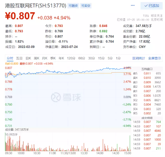 三、【港股升势凌厉,科网龙头集体爆拉!港股互联网ETF(513770)高开高走涨近5%!】