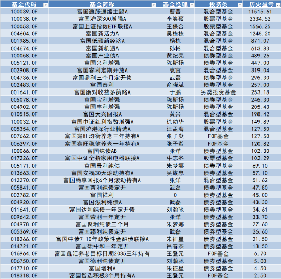 粗略计算,富国基金历史自购行为产生了1.45亿元浮盈(未将货币的时间价值纳入计算公式)。富国通胀通缩主题A、富国沪深300增强A、富国上证指数ETF联接A以及富国新活力A,这几只产品均带来上千万浮盈。其中,2010年5月申购的富国通胀通缩主题A,单位净值从1.00元增长至目前2.24元,产生1.15亿元浮盈。