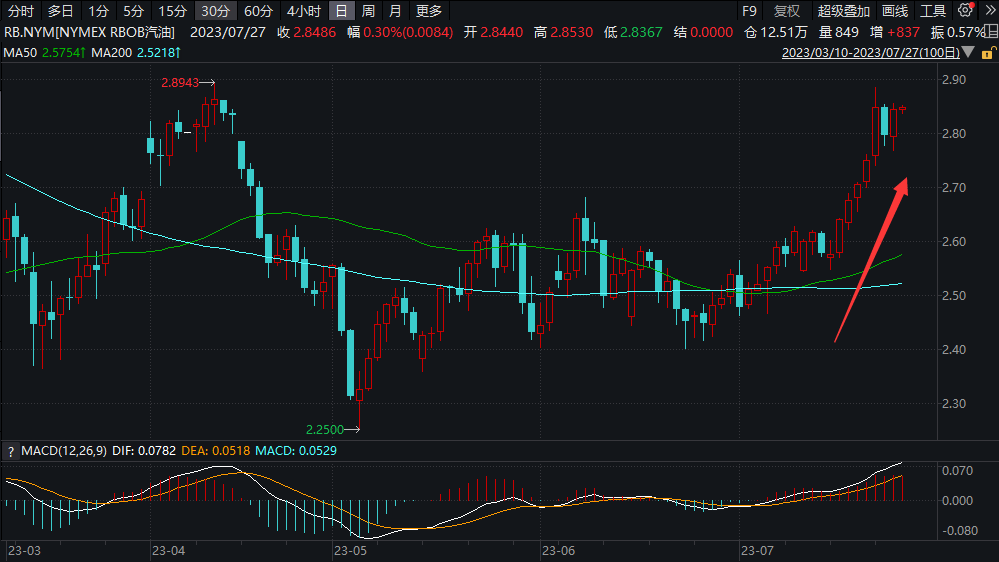 本周早些时候,纽约RBOB汽油期货价格一路飙升至了九个月高位2.8867美元/加仑,现货市场亦受到了波及。