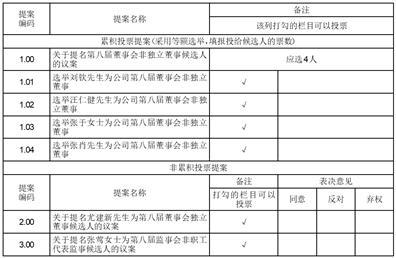 股东可以将所拥有的选举票数在4位非独立董事候选人中任意分配,但投票总数不得超过其拥有的选举票数。