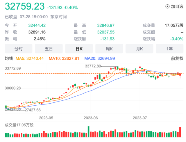 这一举措在一定程度上削弱市场对植田的鸽派看法,就日本股市而言,如果投资者平仓指数期货的多头头寸,日经225指数将跌至31000点。