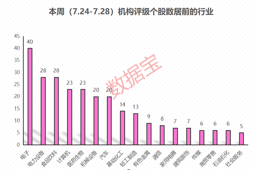 从申万一级行业来看,电子行业有40股获评级,位居首位;电力设备和食品饮料行业均有28股,次之;计算机和医药生物均有23股上榜,排名第三。