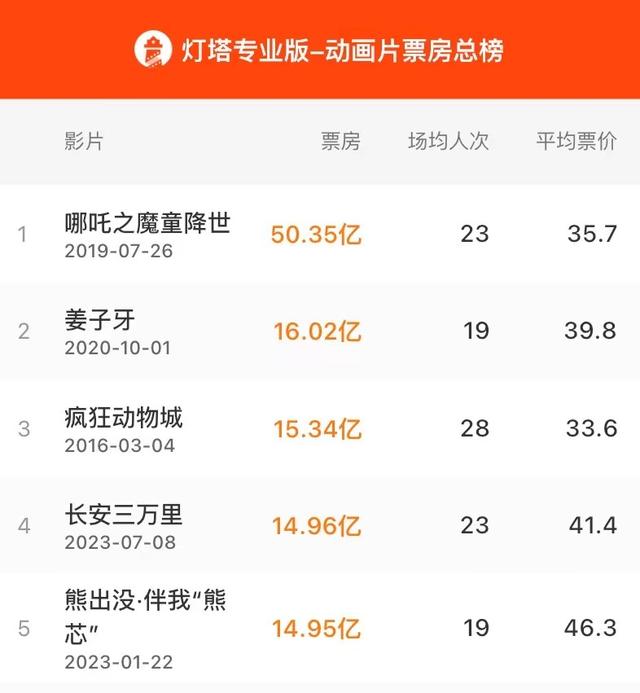 新京报讯 7月30日,据灯塔专业版数据显示,电影《长安三万里》票房达到14.96亿,超过了《熊出没:伴我“熊芯”》,成为今年内地动画电影票房冠军,同时也成为中国影史动画电影票房总榜第四名。