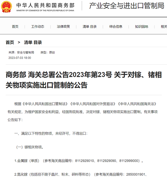商务部、海关总署7月3日发布《关于对镓、锗相关物项实施出口管制的公告》,8月1日起,对镓、锗相关物项实施出口管制。其中,镓相关物项包含氮化镓、砷化镓、铟镓砷等;锗相关物项包含磷锗锌、锗外延生长衬底、二氧化锗等。