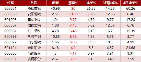 盛德鑫泰、安阳钢铁、重庆钢铁、酒钢宏兴、八一钢铁、抚顺特钢(维权)、山东钢铁、宝地矿业、马钢股份、凌钢股份等。