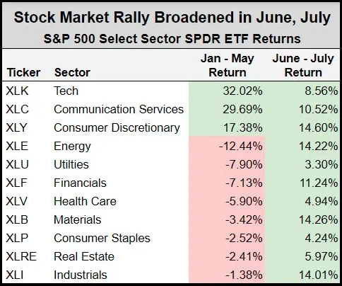 财联社8月1日讯(编辑 潇湘)对于投资者来说,七月已经过去,在这个酷热的盛夏季节,“好消息”是:今年上半年股市的迅猛涨势得到了延续。而“更好的消息”是,在美股牛市延续的过程中,还发生了尤为可喜的变化——人们不再单单依赖科技行业的“神奇七侠”,来为股市的上涨撑起门面!