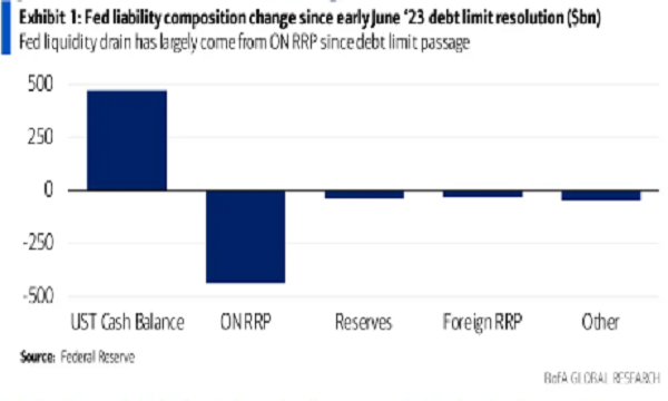 不过,美国银行利率策略师马克·卡巴纳(Mark Cabana)向第一财经记者表示,“自债务上限协议达成以来,流动性流失的构成总体上符合我们的预期,几乎完全来自美联储RRP。我们预计未来这种趋势还会持续下去,这应该会将银行体系总体准备金短缺的情况推迟到2025年下半年。”