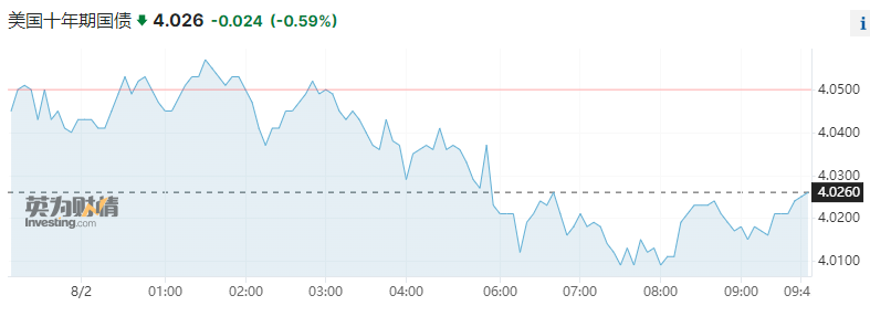 美债期货则在惠誉下调美国主权评级消息传出后短线上涨。在亚洲时段现货市场重新开盘后,各期限美债收益率则窄幅整理。美国10年国债收益率最新交投于4.026%,美国2年收益率徘徊于4.883%。