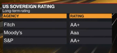惠誉评级(Fitch Ratings)在周二美股盘后,将美国长期外币发行人违约评级从最高的AAA评级下调至AA+,理由是财政状况和治理不断恶化。两个月前,政治边缘政策一度将这个全球最大经济体推到了主权债务违约的边缘。