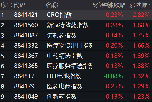 8月3日上午,医药生物板块触底反弹,在申万一级行业中冲在首位。CRO、仿制药、医疗服务等多个细分赛道涨幅居前。