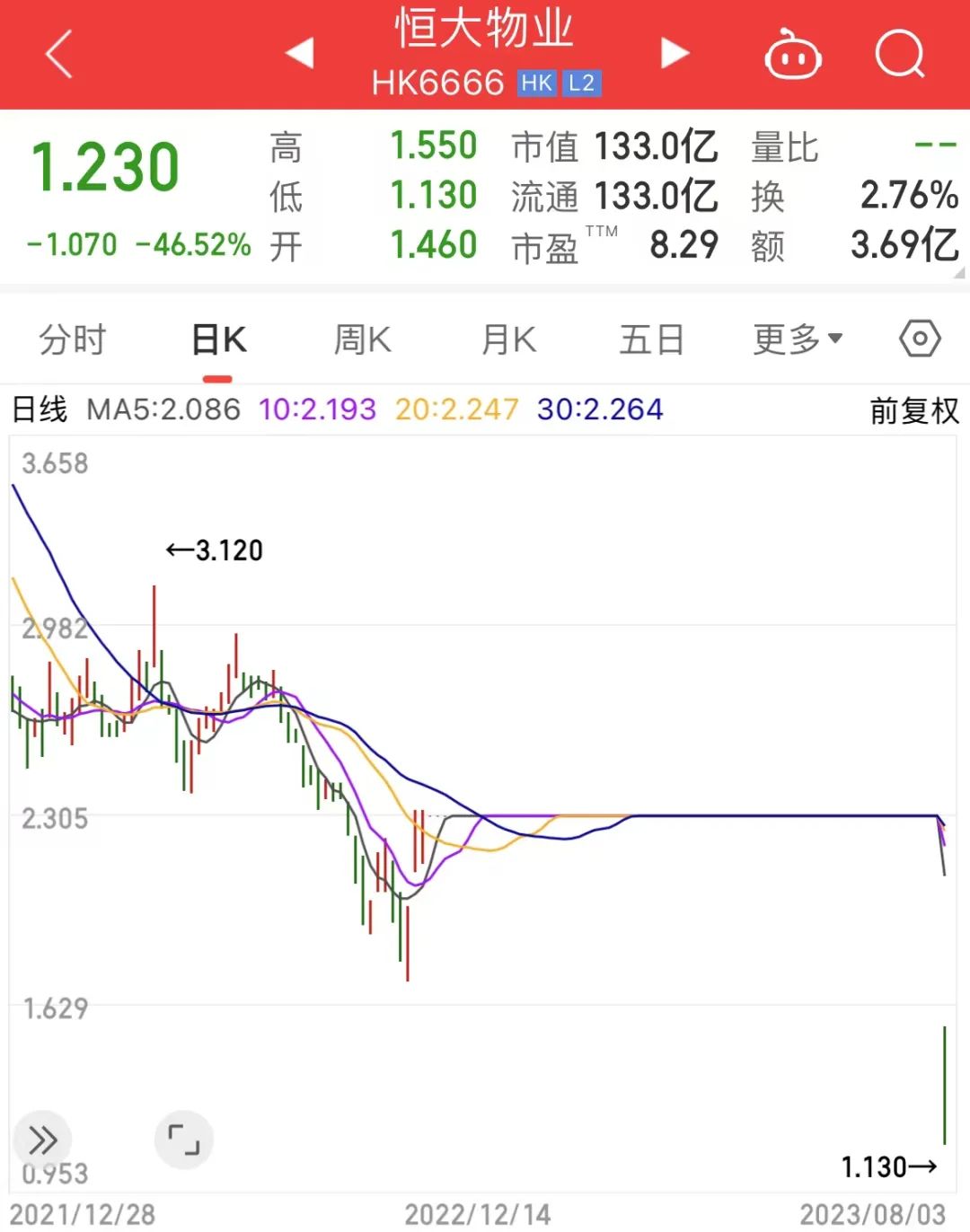 恒大系第二家上市公司迎来复牌。8月3日,恒大物业重启交易,开盘大跌超四成。截至上午收盘,该股跌46.52%,市值蒸发超100亿港元。