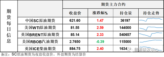 【1】WTI主力原油期货收涨2.06美元,涨幅2.59%,报81.55美元/桶;布伦特主力原油期货收涨1.94美元,涨幅2.33%,报85.14美元/桶;INE原油期货收涨1.47%,报621.6元。