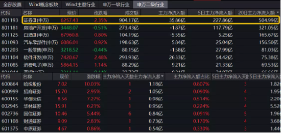主力资金方面,申万二级证券板块现获主力资金净流入35.86亿元,位居所有申万二级行业首位,拉长时间看,证券II近5日获主力增仓227.86亿元,近20日获增仓504.99亿元,均位于所有申万二级行业首位,可见市场资金对板块后市表现信心颇足。