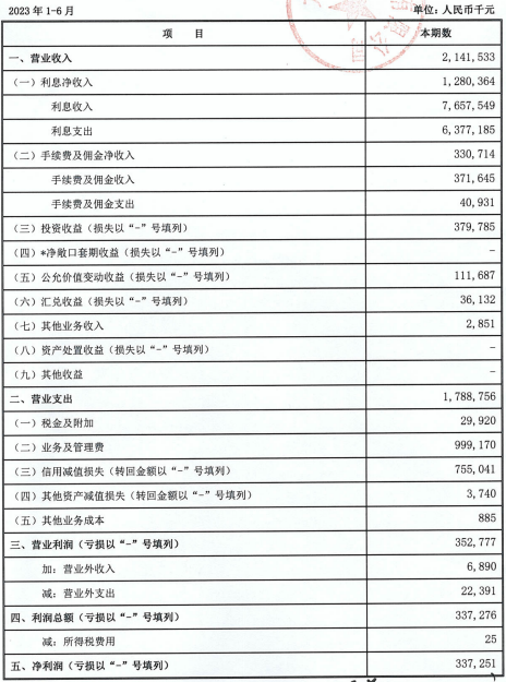 中国经济网北京8月4日讯 大连银行股份有限公司(以下简称“大连银行”)于近日发布2023年半年度信息披露报告。报告期内,大连银行实现营业收入21.42亿元,同比减少30.34%;实现净利润3.37亿元,同比减少19.79%。