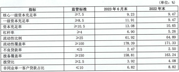 截至2023年6月末,大连银行资本充足率为13.08%,上年末为10.65%;一级资本充足率为11.91%,上年末为9.47%;核心一级资本充足率为9.23%,上年末为9.47%。