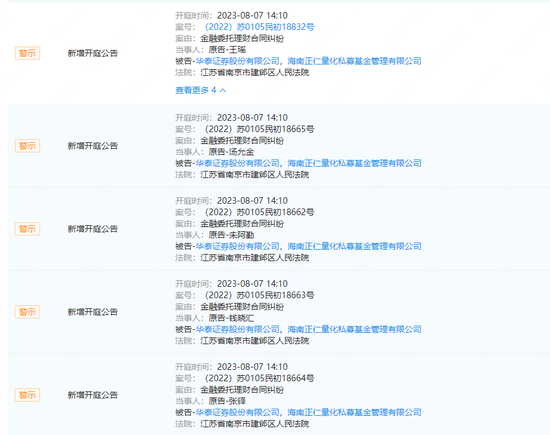 就在接下来的周一,南京市建邺区人民法院(简称:建邺区法院)预定在8月7日同时开庭审理至少五起金融委托理财纠纷案。原告方均为自然人,被告方均是华泰证券和正仁量化。