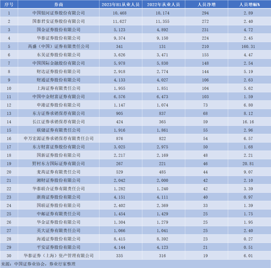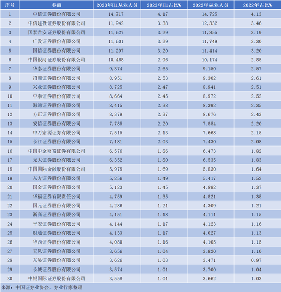 正值上市券商中报季,行家通过中证协从业人员数据,对2023年中期券商人员现状进行了统计。