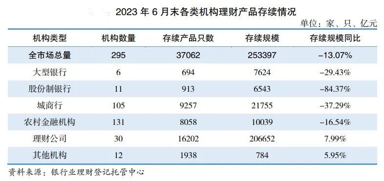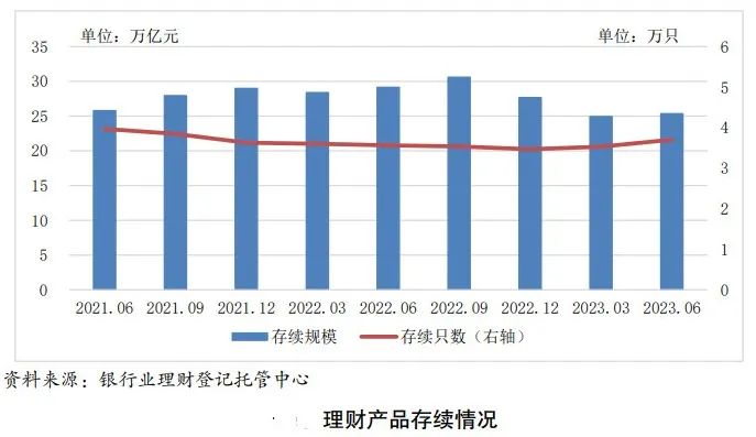 报告显示,截至6月末,全国共有265家银行机构和30家理财公司有存续的理财产品,共存续产品3.71万只,较年初增长6.88%;存续规模25.34万亿元。