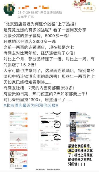 另一方面,近期国内各大城市酒店涨价的消息也引发网友热议,“月薪2万住不起汉庭如家”“北京酒店最近为何涨价凶猛”“汉庭如家的房价直逼香格里拉”等话题的讨论度直线上升。